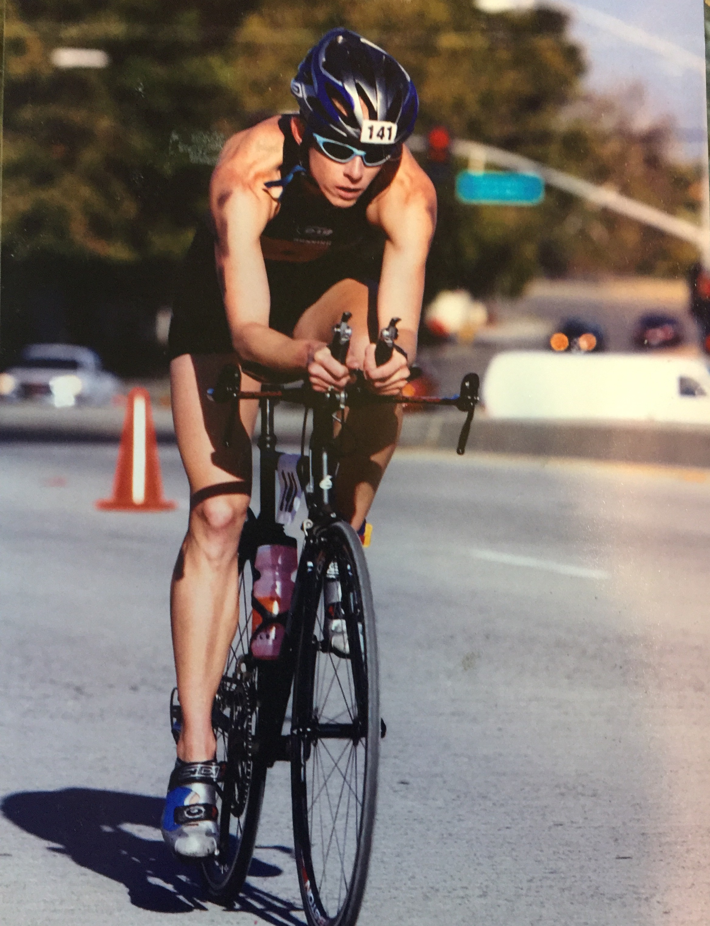 - First triathlon. Unfortunately the picture does not capture the complete look. Tall socks + two piece speedo + $250 bike from the late 80’s! (2004)