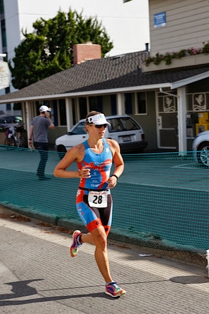 By this point, I was pretty certain that the two of us were racing for the overall win, but I had no idea what kind of runner she was. In light of that, I decided to stick with my original plan for the race: start out just under 7:00 mile pace, and speed up from there. The run course at Santa Cruz goes along a bike path, and it’s pretty easy to see who is ahead of you. The gap was a constant 30 seconds for the first half of the run.